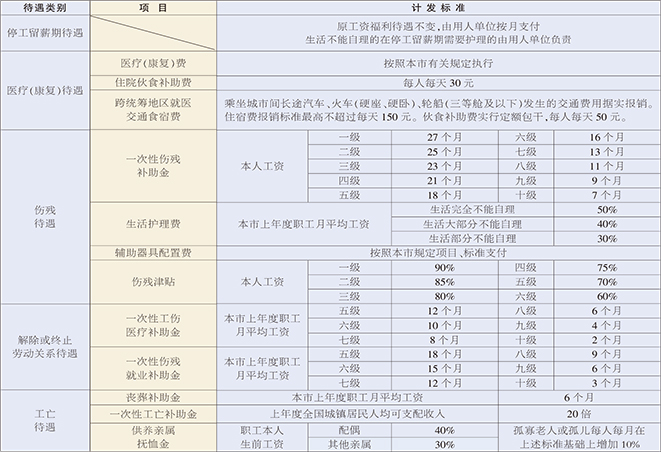 天津市工伤保险待遇标准一览表