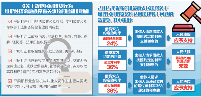《通知》还对民间借贷中出借人的资金作出了规定,出借人的资金必须是其合法收入的自有资金,禁止吸收或变相吸收他人资金用于借贷。民间借贷一旦发生纠纷,应当按照《最高人民法院关于审理民间借贷案件适用法律若干问题的规定》处理。根据最高法的规定,借贷双方约定的利率未超过年利率24%,出借人请求借款人按照约定的利率支付利息的,人民法院应予支持。借贷双方约定的利率超过年利率36%,超过部分的利息约定无效。若借款人请求出借人返还已支付超过年利率36%部分的利息,人民法院应予支持。