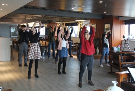 此次培训的主要内容是天津市第三套市民广播体操,培训现场教练一边演示规范动作,一边耐心细致地讲解,让大家充分了解工间操的益处。