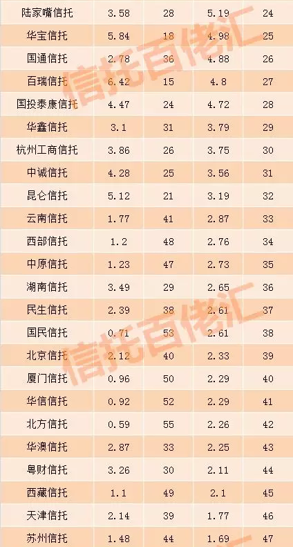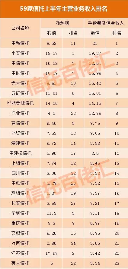59家信托公司上半年信托业务收入排名 中融平安中信中航雄踞前四